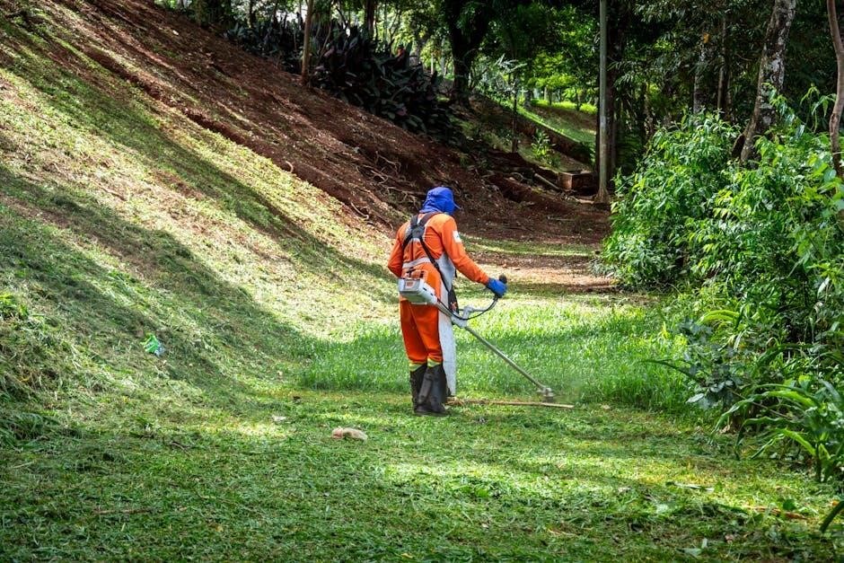 Regular maintenance is crucial for extending the lifespan of your lawn mower. Daily tasks include blade inspection and oil level checks. Weekly to monthly tasks involve sharpening blades, servicing the air filter, and lubricating moving parts. Annual maintenance includes oil changes, spark plug replacement, and belt inspection. Seasonal tips cover pre-season preparation, mid-season checks, and end-of-season storage. Following the manufacturer’s guidelines and using genuine parts ensures optimal performance and safety. A well-maintained mower guarantees efficient cutting and reduces repair needs.